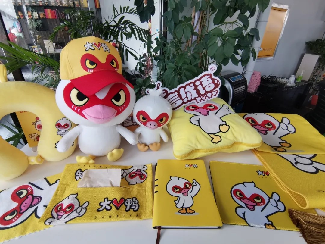 绒言绒语为安徽永强农业全权打造的吉祥物大V鸭,不仅频繁参与永强农业的各种公开活动,更是全面应用到了永强农业的办公系统和公共传播系统,以大V鸭为核心元素开发了系列工装T恤、帽子、桌旗、笔记本、鼠标垫、抽纸盒等,极大地加强了永强农业的统一化视觉传播。