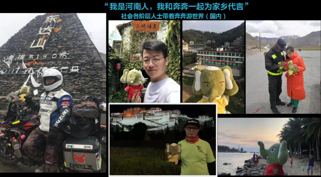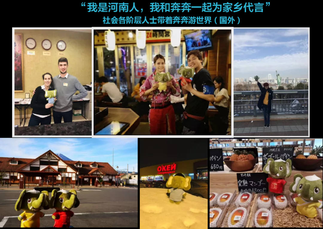 截止到目前,奔奔已经被不同阶层热爱家乡的河南人带到了日本、美国、英国、俄罗斯、澳大利亚、南非、新加坡、泰国等20多个国家,西藏、浙江、海南等30多个省市,同时也将河南文化传播到了世界的各个角落。