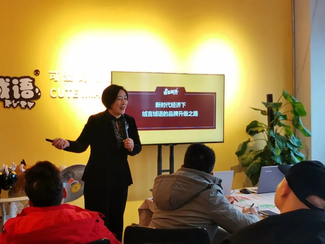 此次游学活动,绒言绒语董事长郑淑分享交流的课题也正是[新时代经济下,绒言绒语的品牌升级之路],即如何借助IP的形式,把握市场新趋势,实现品牌升级再造!