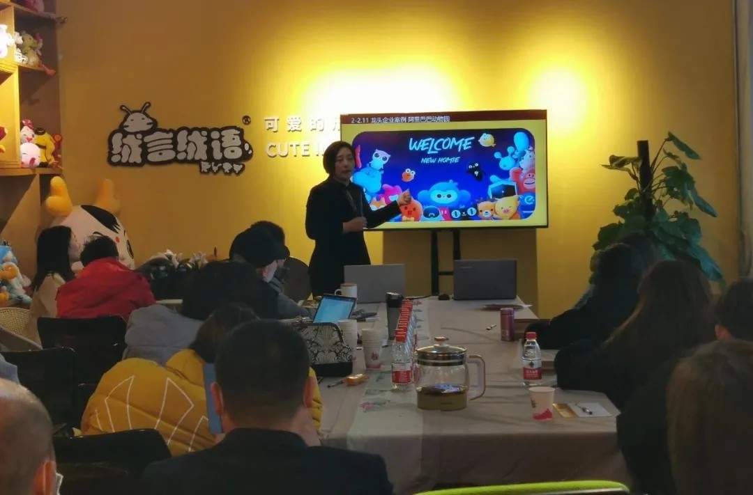 参观结束,绒言绒语董事长郑淑就[吉祥物IP赋能企业品牌升级]的课题与众学员进行了深入分享和交流。