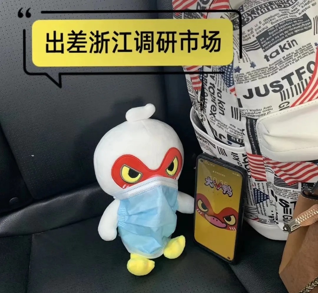 回首2020年,大V鸭开发的系列衍生品真是多到数不过来,公仔、雨伞、车贴、挂饰、颈枕、空调被、帽子、行李箱、表情包等等,处处入人眼,时时抓人心。