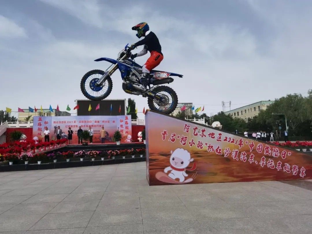 赛场上,参赛选手们身着赛服,炎热的天气丝毫没有影响他们比赛的热情,开足马力、直线加速、空中飞跃,惊险刺激的动作时不时牵动着在场观众们的心。